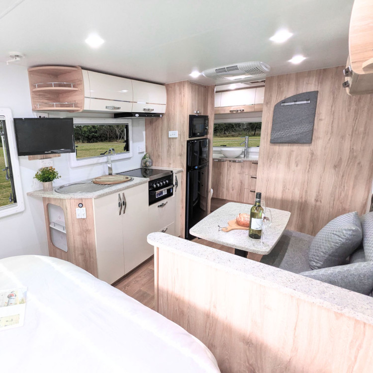 Plenty of space to brew the coffee, and prepare all your meals with a cook top, grill and microwave.